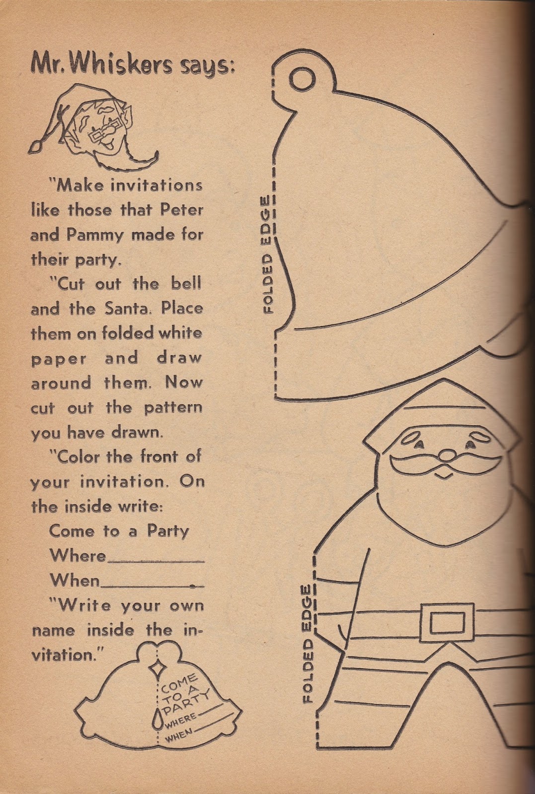 It's typical of coloring and activity books of the 50's through the 70's. In fact, I recognized the interior artwork right away. The same artists illustrated a Christmas coloring book I have from my childhood. The artists were Bonnie and Bill Rutherford. There's very little about them on the internet. In fact, all I could find was Bill's obituary. This husband and wife team illustrated a multitude of children's books. Similarly, the cover artis, Florence Sarah Winship was also a prolific children's book illustrator, but very little can be found about her. I know her work best from the Whitman Tell-a-Tale book "The Night Before Christmas". And yes, Santa's suit and hat are fuzzy.