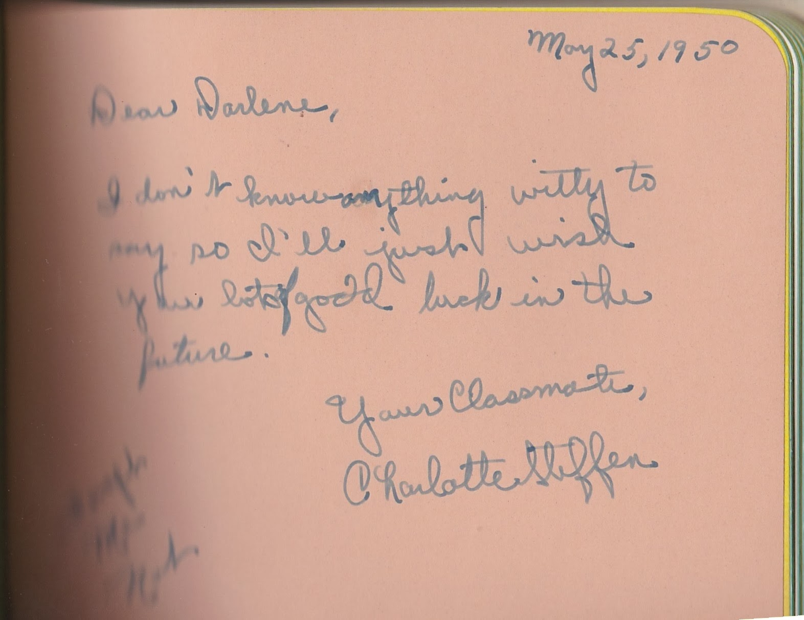 The reflections and well-wishes in the book begin with one from Darlene's mother on January 5th, 1948.