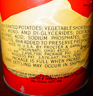 Introduced regionally by Procter & Gamble in 1967, Pringle's Potato Chips went nationwide in 1975, around the time my friend was munching on them in the lunch room. Pringle's chips are actually a fried dough made from 42% dehydrated potatoes mixed with flours and oils formed into a hyperbolic paraboloid. It wasn't long before other chip manufacturers were crying foul (a sure sign Pringle's was doing well) charging Pringle's Chips weren't in fact "chips" in the true sense. The U.S. Food & Drug Administration agreed and that's the reason today's cans say "Pringle's Crisps".