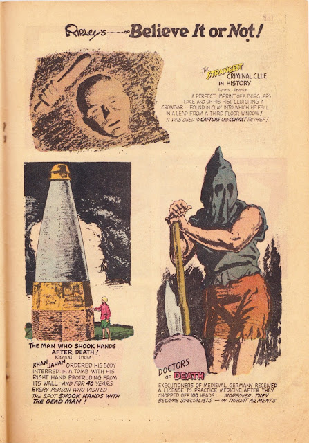 It's time once to again to expose explore a Ripley's Believe It or Not! comic book. Like last year, I'll discuss the validity of each story and link it to actual legends or events. Unlike last year's, this issue contains no ads. Sorry kids.